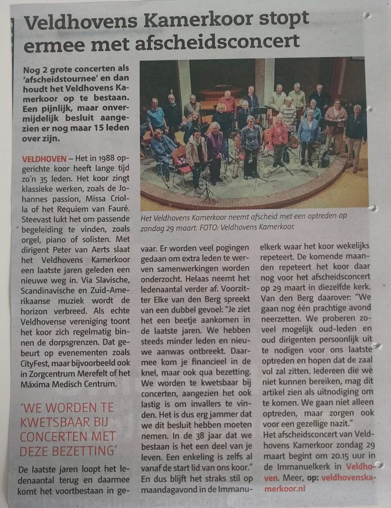 Het Veldhovens Kamerkoor stuurt persberichten naar diverse media waaronder: